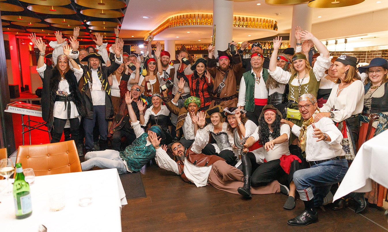 Nach dem großartigen Ausflug ging es zurück zum Hotel mit Zeit zum Vorbereiten für das Dinner im Hamburger Top-Restaurant Henriks. Gemäß dem Piraten-Motto stand es frei sich zu kostümieren, was viele FORT!Sianer*innen taten. Im Verlauf des Abends wurden zudem die vier schönsten Kostüme prämiert. Bereits vor Beginn des Menüs sorgte die Liveband „Ever’so“ für gute Stimmung. Die FORT!S Fotobox wurde den ganzen Abend über rege genutzt. Die Fotos mit Accessoires vor dem passenden Hintergrundbild konnten direkt ausgedruckt und mitgenommen werden.