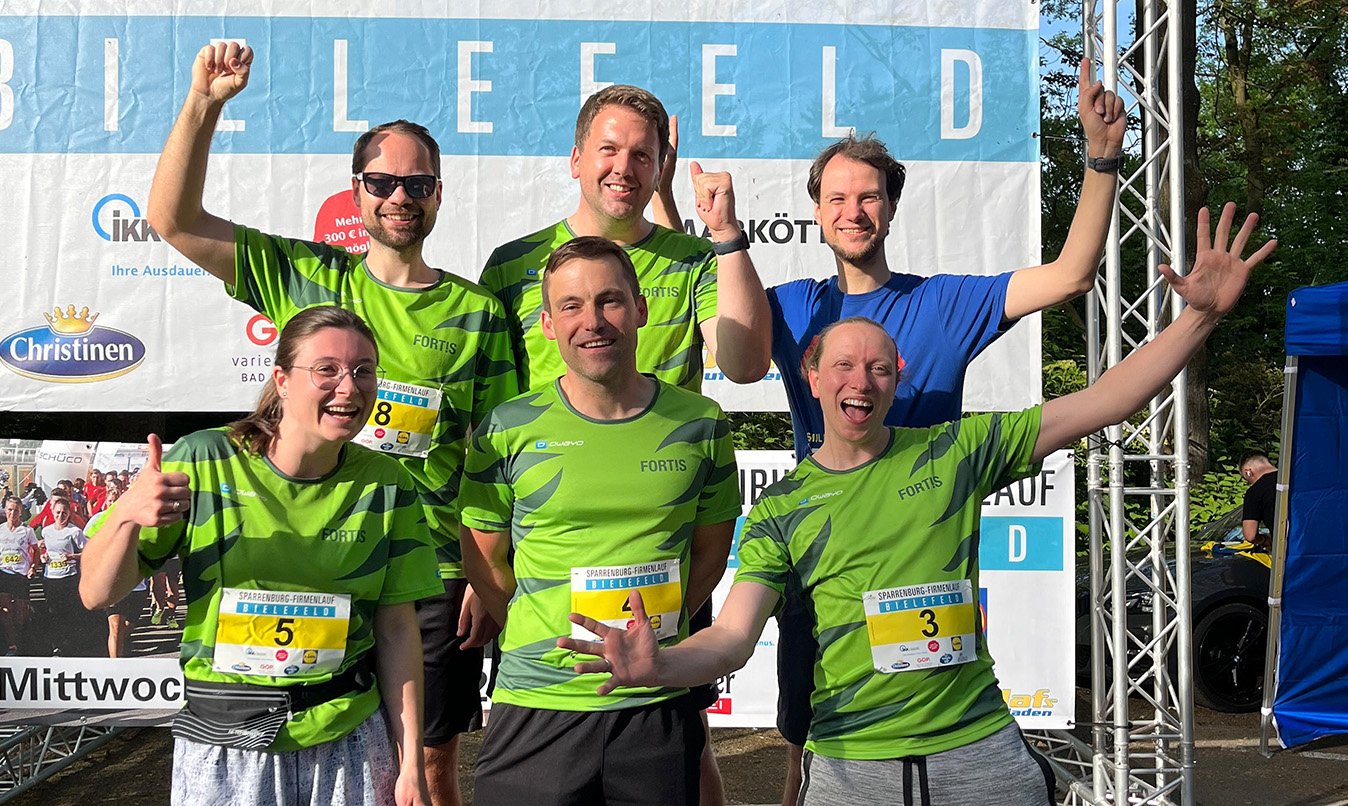 In der zweiten Auflage des Sparrenburglaufs in Bielefeld waren sieben Fortisianer*innen aus dem Bielefelder Büro dabei.