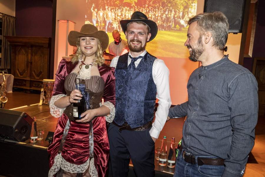 Die vorabendliche Freizeit nutzten die meisten, um sich zu erholen, in den angrenzenden Badesee zu springen oder sich schon in ihre mitgebrachten Wildwest-Outfits zu werfen. Das Abendessen wurde im stilecht dekorierten „FORT!S-Saloon“ gereicht. Nach einer Begrüßung durch den Geschäftsführer Olaf Güllich und einem Rückblick auf die Erfolge der lebhaften vergangenen Monate, wurden alle neuen Mitarbeiter*innen vorgestellt, mit Applaus willkommen geheißen, sowie die Jubilare gefeiert und die Abendveranstaltung eröffnet. Das Buffet bot eine große Vielfalt köstlicher vegetarischer, veganer, aber auch Fisch- und Fleischgerichte. Im Laufe des Abends wurden nicht nur die Sieger*innen der Western-Challenge gekürt, sondern auch die besten Western-Outfits.