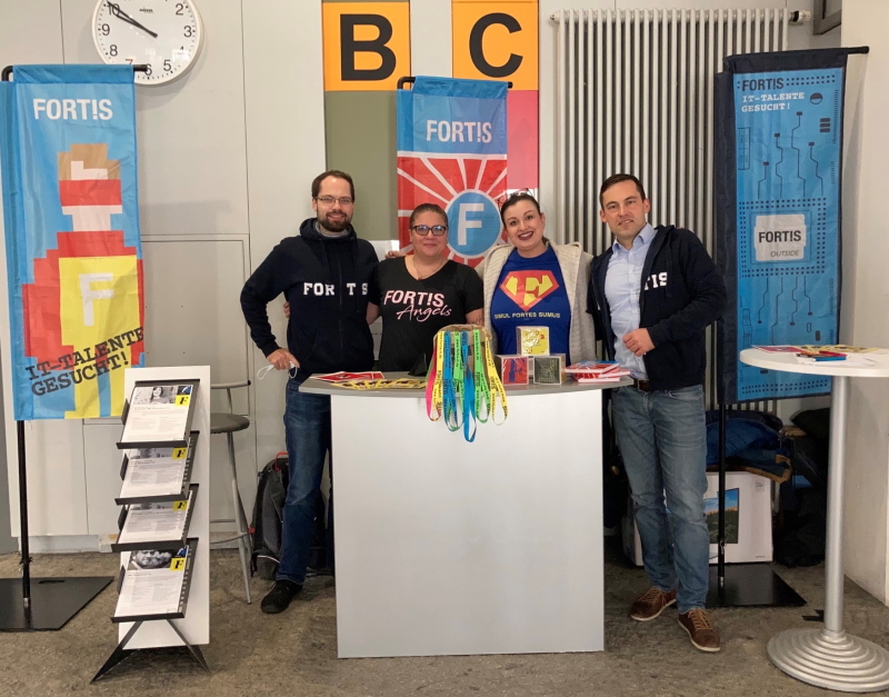 FORT!S besucht immer gerne verschiedene Studierendenmessen, da hier die Möglichkeit besteht Student*innen einen direkten Eindruck von FORT!S und seiner ganz besonderen Art der persönlichen Zusammenarbeit zu vermitteln, Fragen zu beantworten und auch von den Einstiegschancen in die spannende Welt der Projektarbeit von FORT!S zu berichten. Erfahre hier mehr über das FORT!S-Nachwuchsförderungsprogramm: https://fortis-ftw.de/karriere/entwicklung/.
